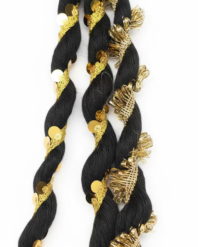 Turn every head with this dazzling Gold Tassel Noor Parandi, expertly handcrafted to bring a touch of royal flair to your braid.
