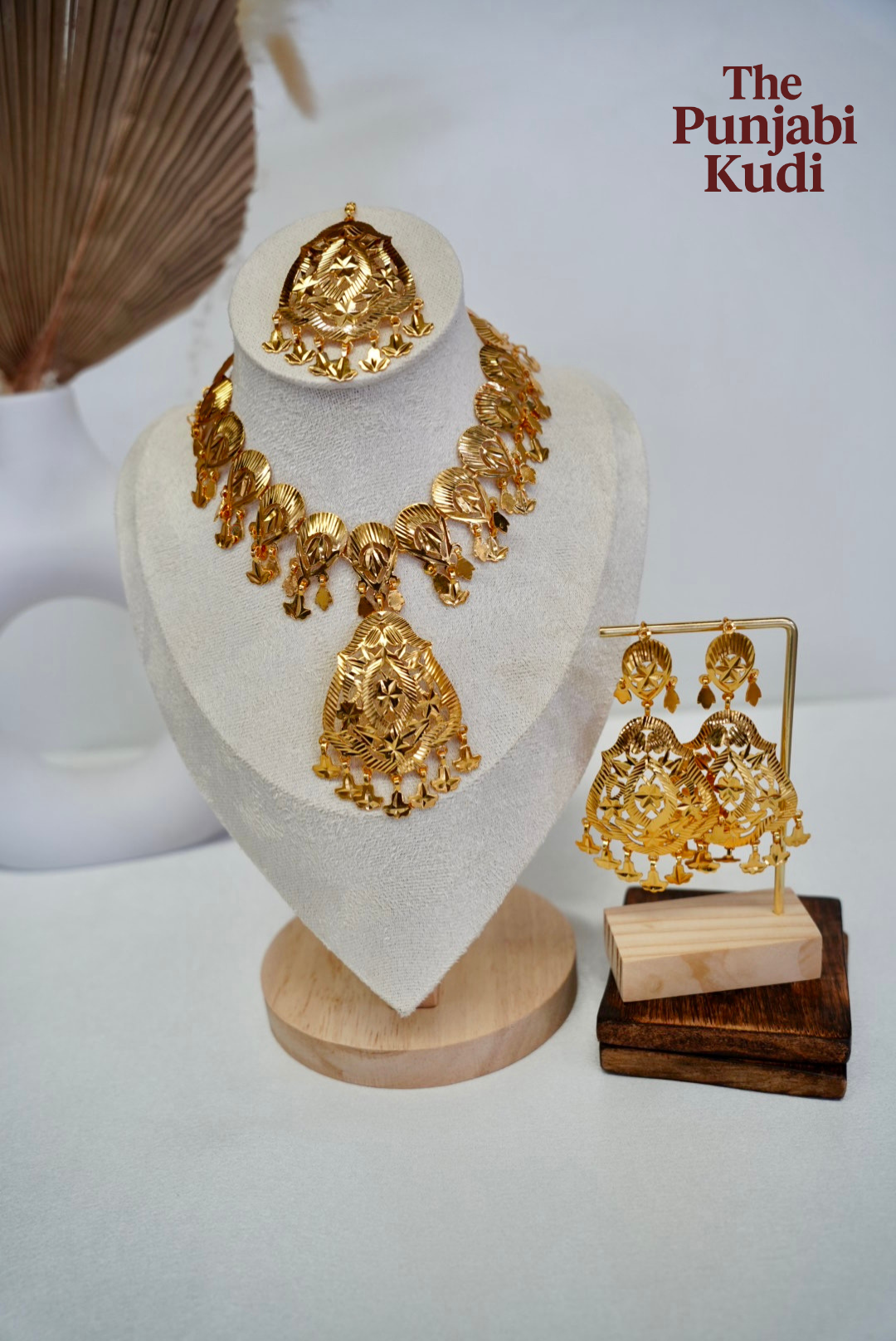 This Patra Traditional Punjabi Pipple Patti Tikka set is a true testament to the timeless beauty and craftsmanship of Punjab.