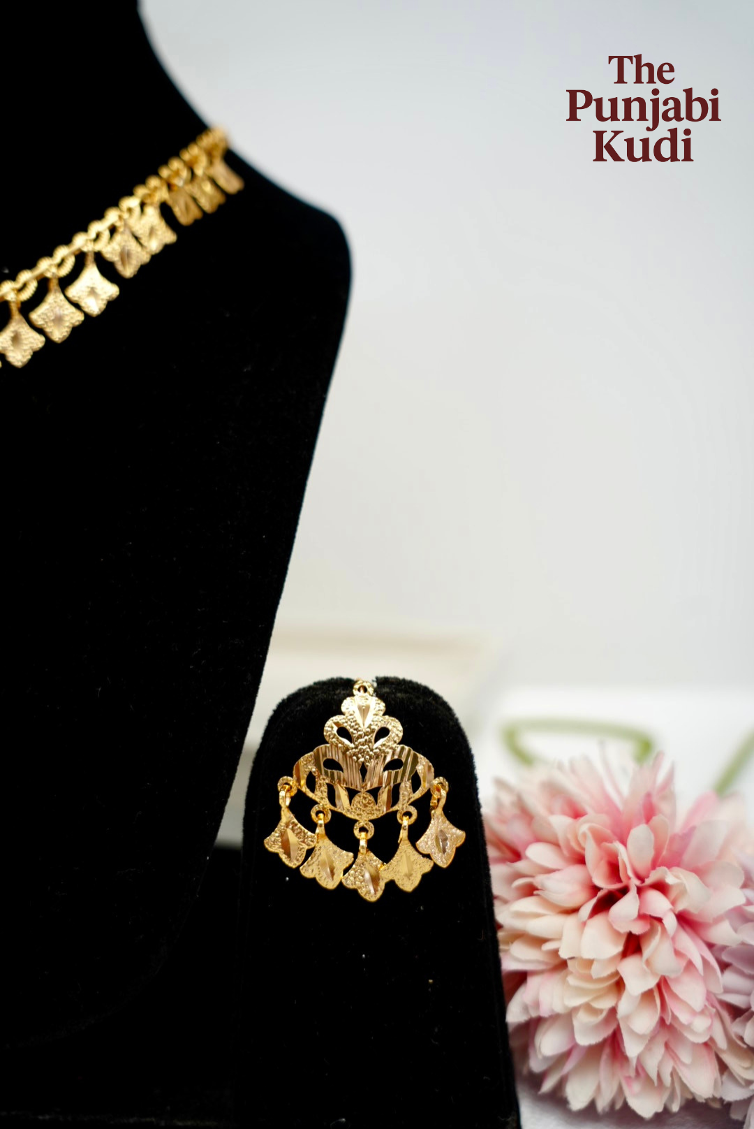 This Traditional Punjabi Pipple Patti Small Tikka set is a true testament to the timeless beauty and craftsmanship of Punjab.